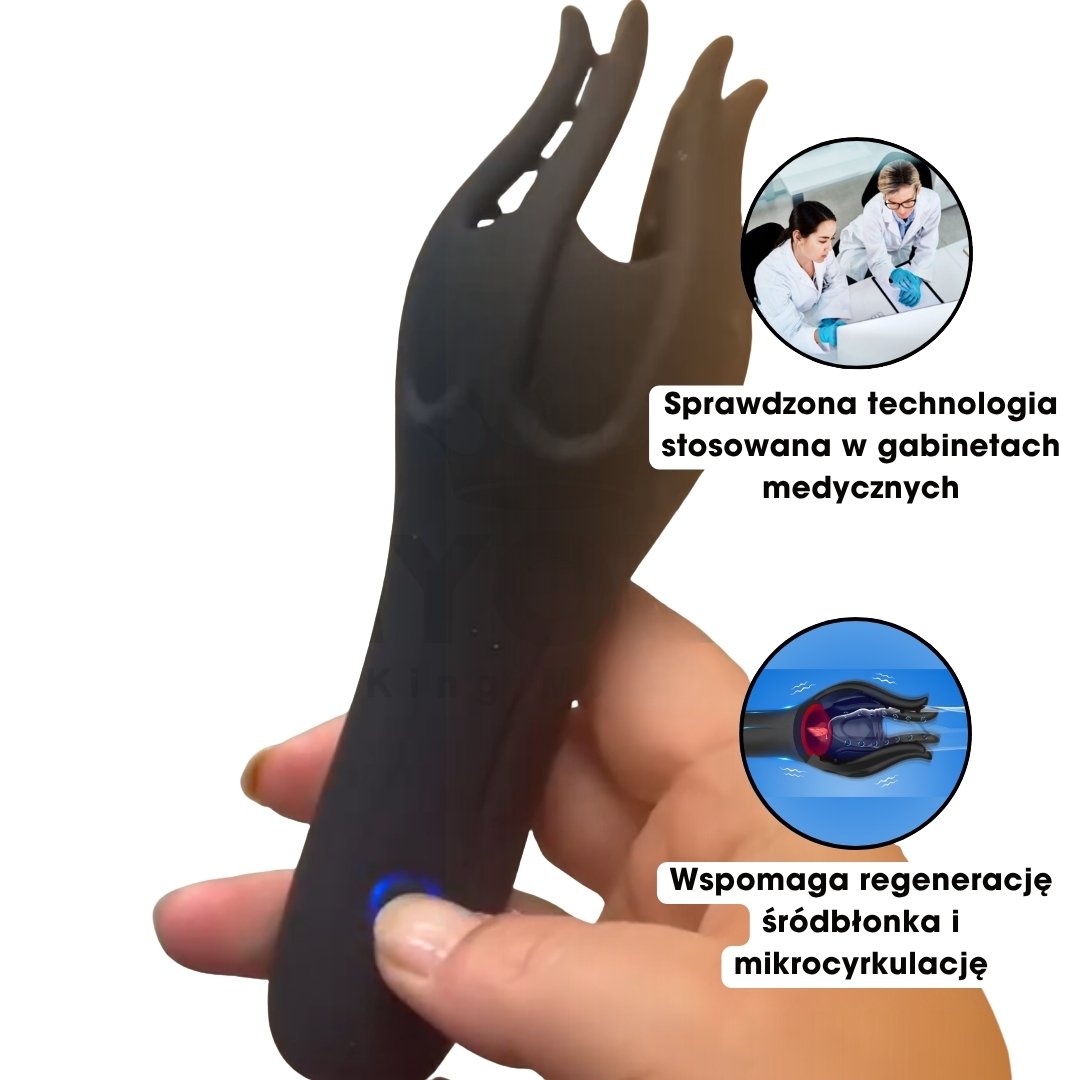 To kompaktowe urządzenie klasy klinicznej, które wspiera zdrowie seksualne mężczyzn poprzez poprawę krążenia, stymulację nerwów i regenerację tkanek.